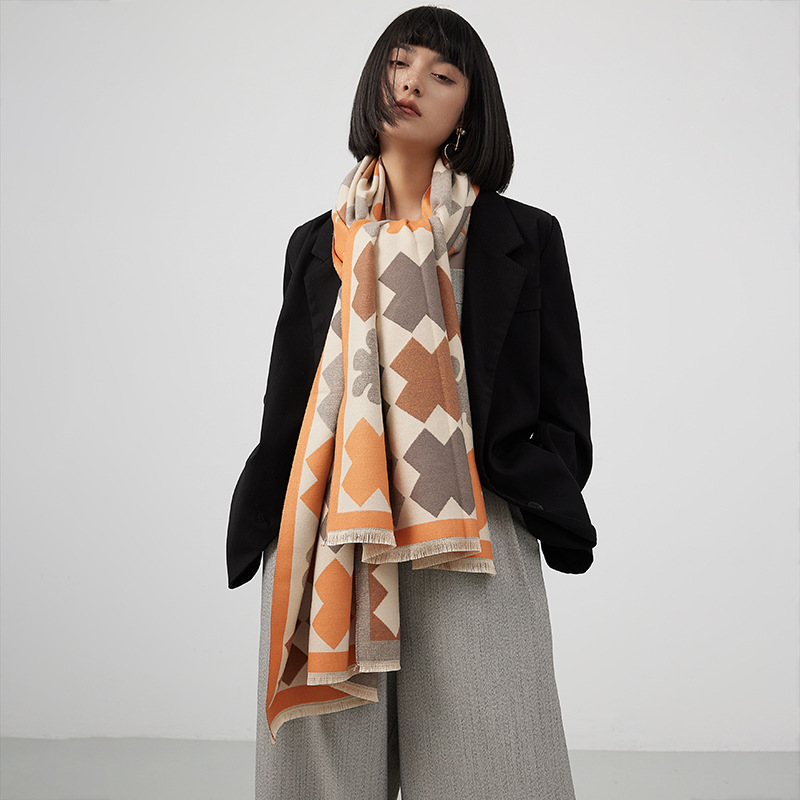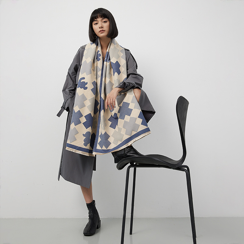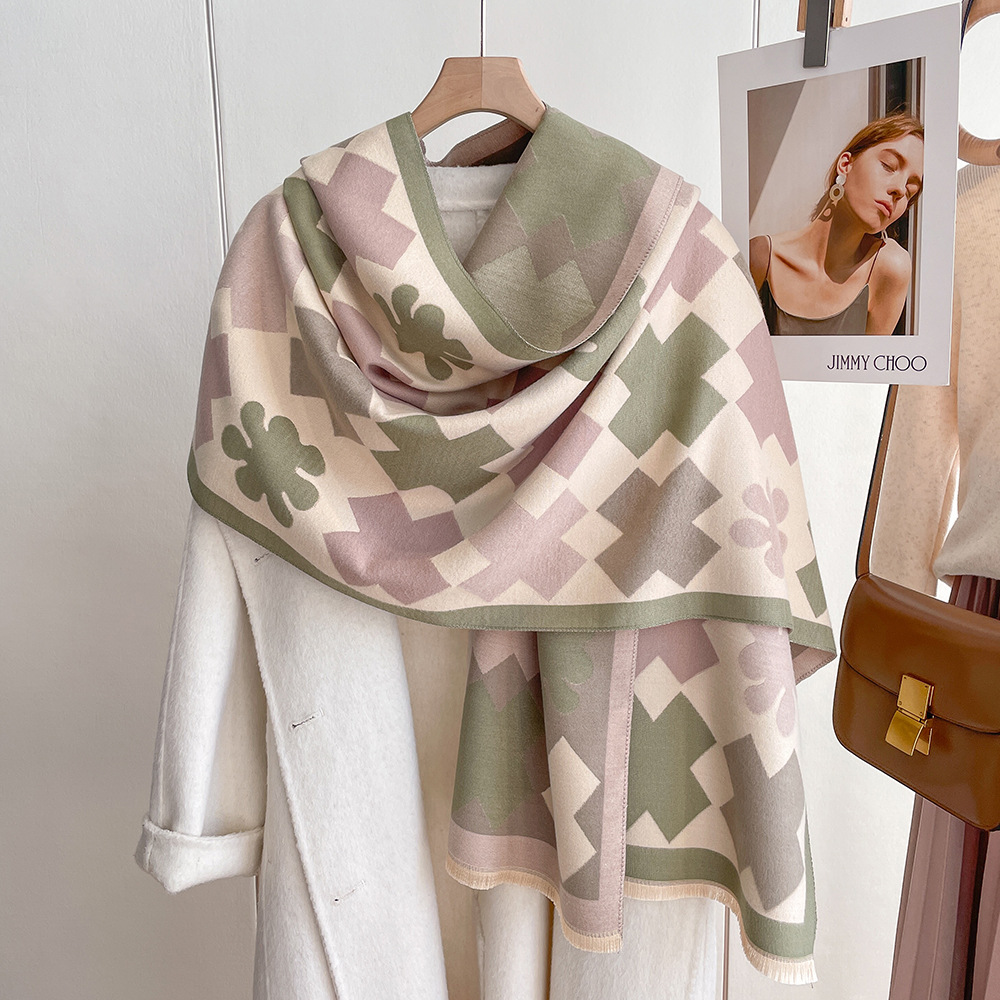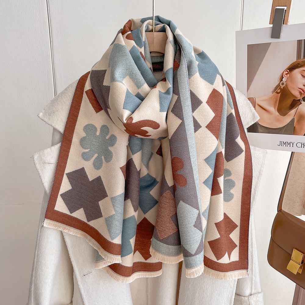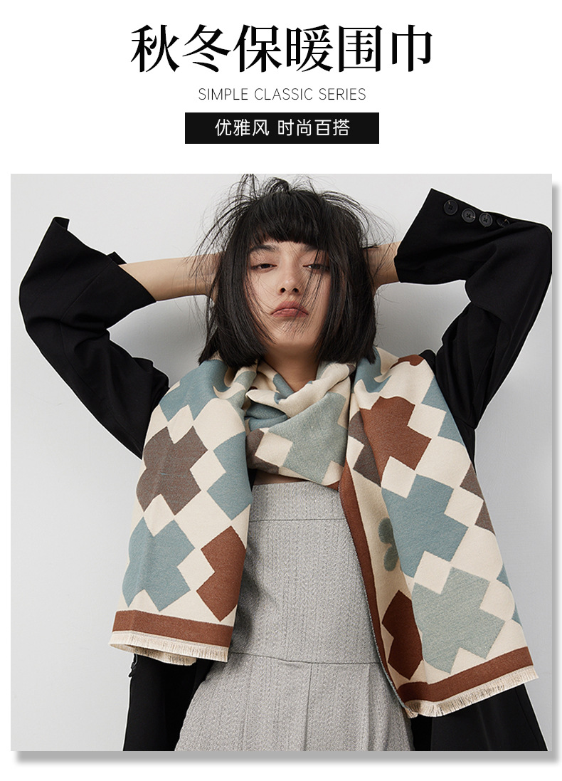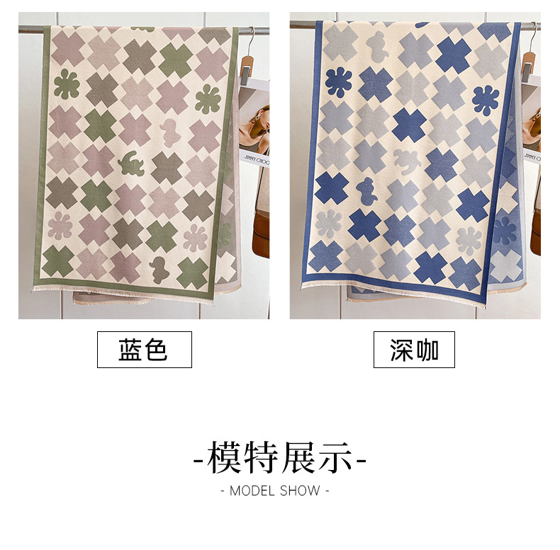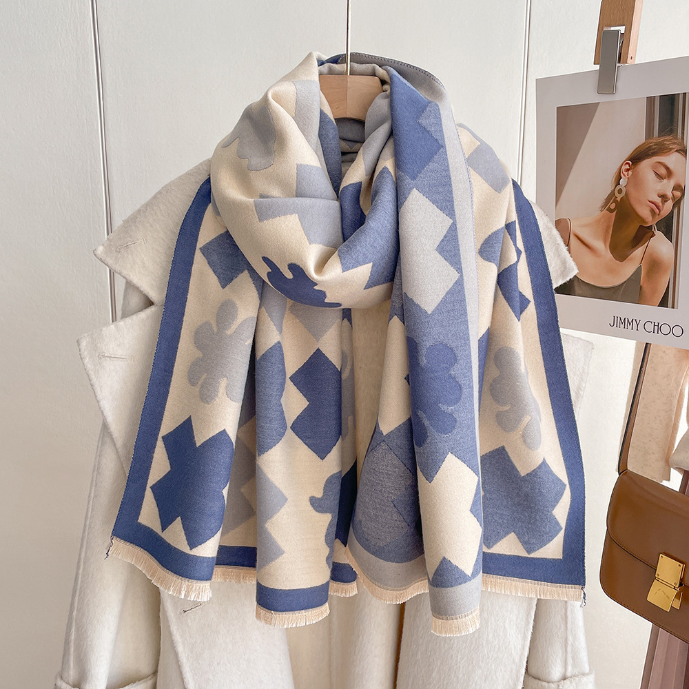 Autumn And Winter New Scarf Women's Shawl Fashion Fork Print Korean Version Small Clear Collar Thick Imitation Cashmere Fringe