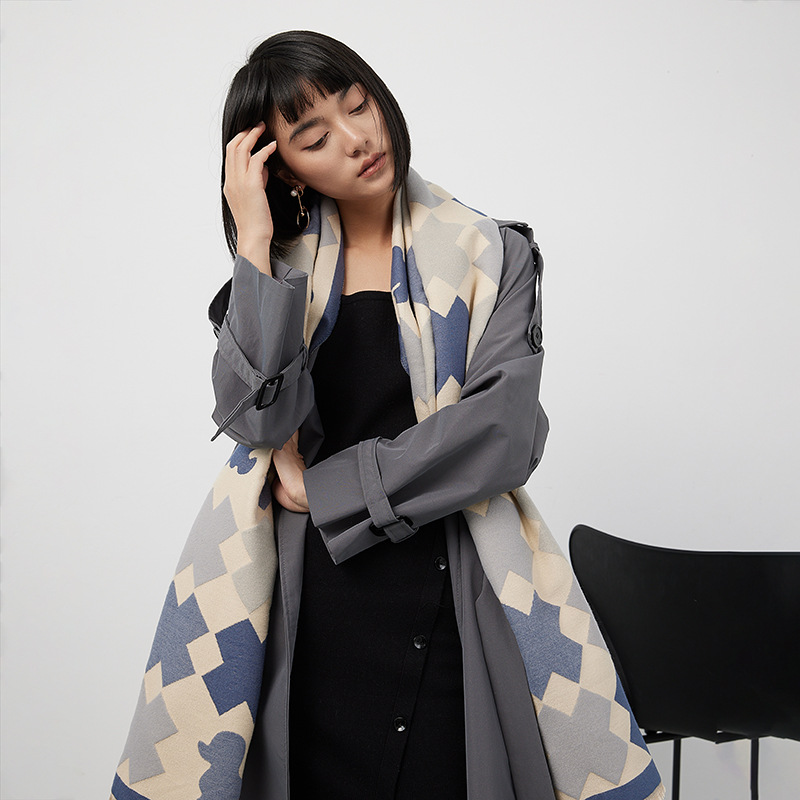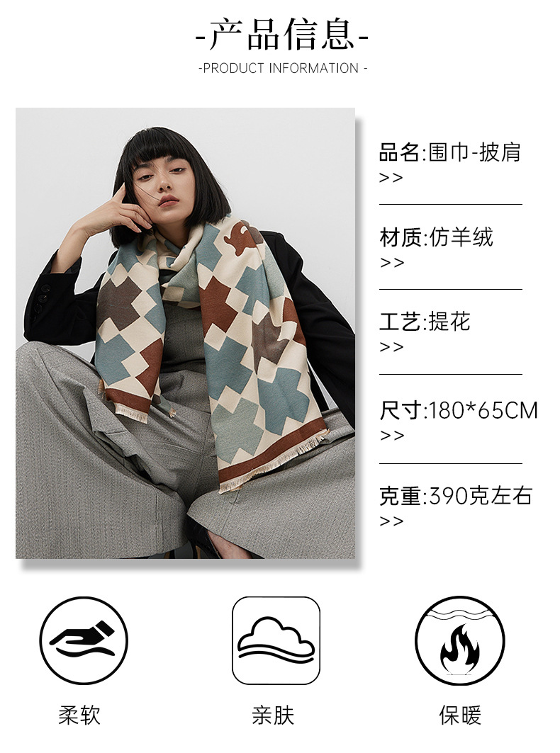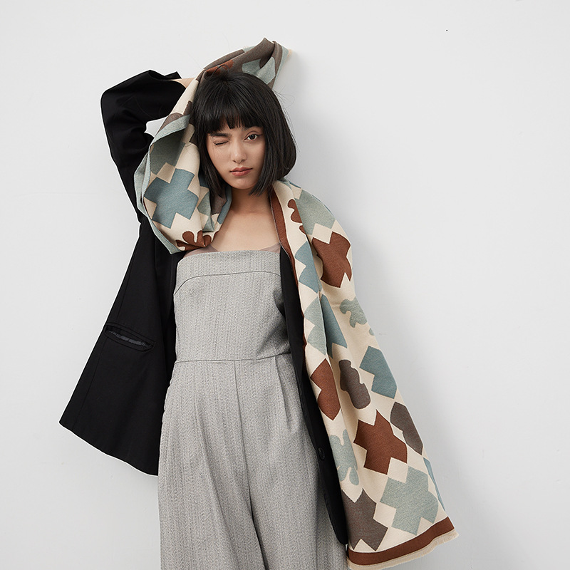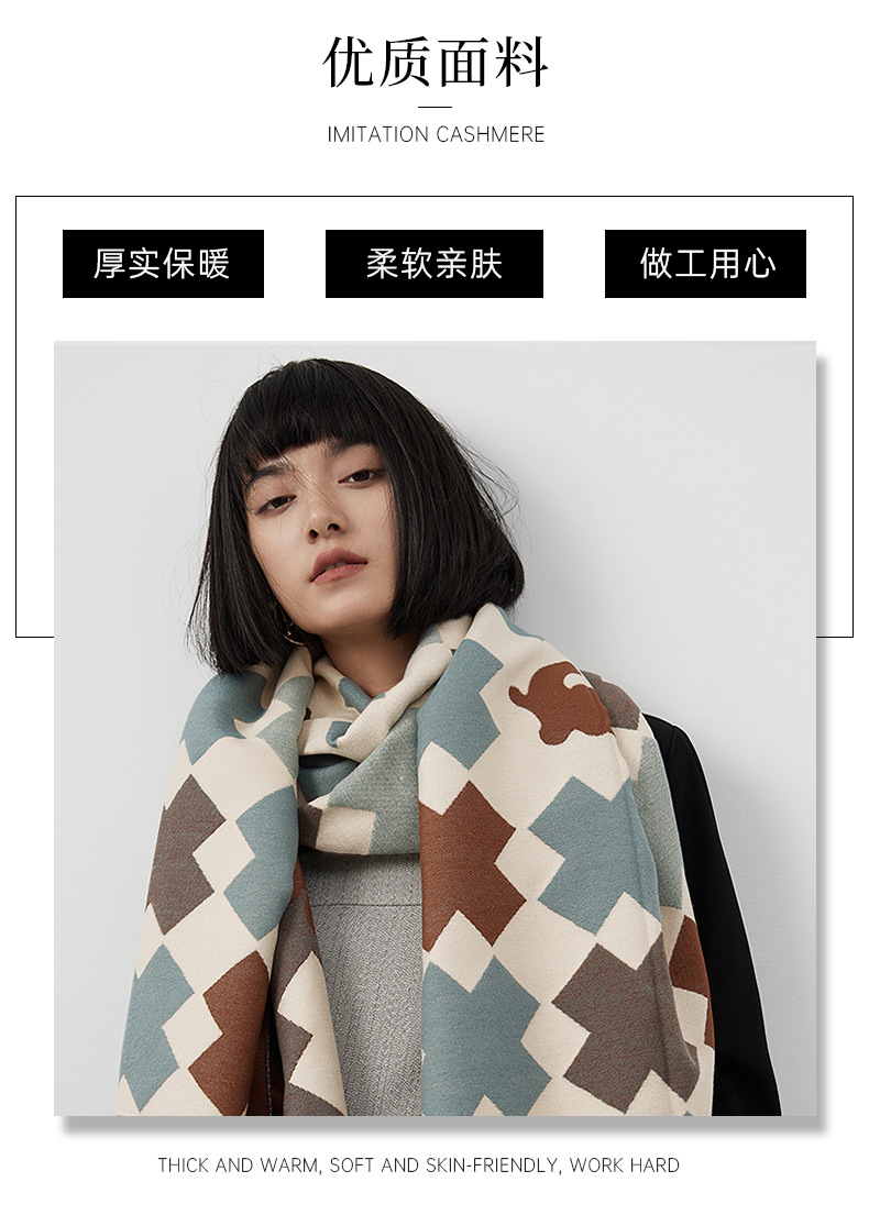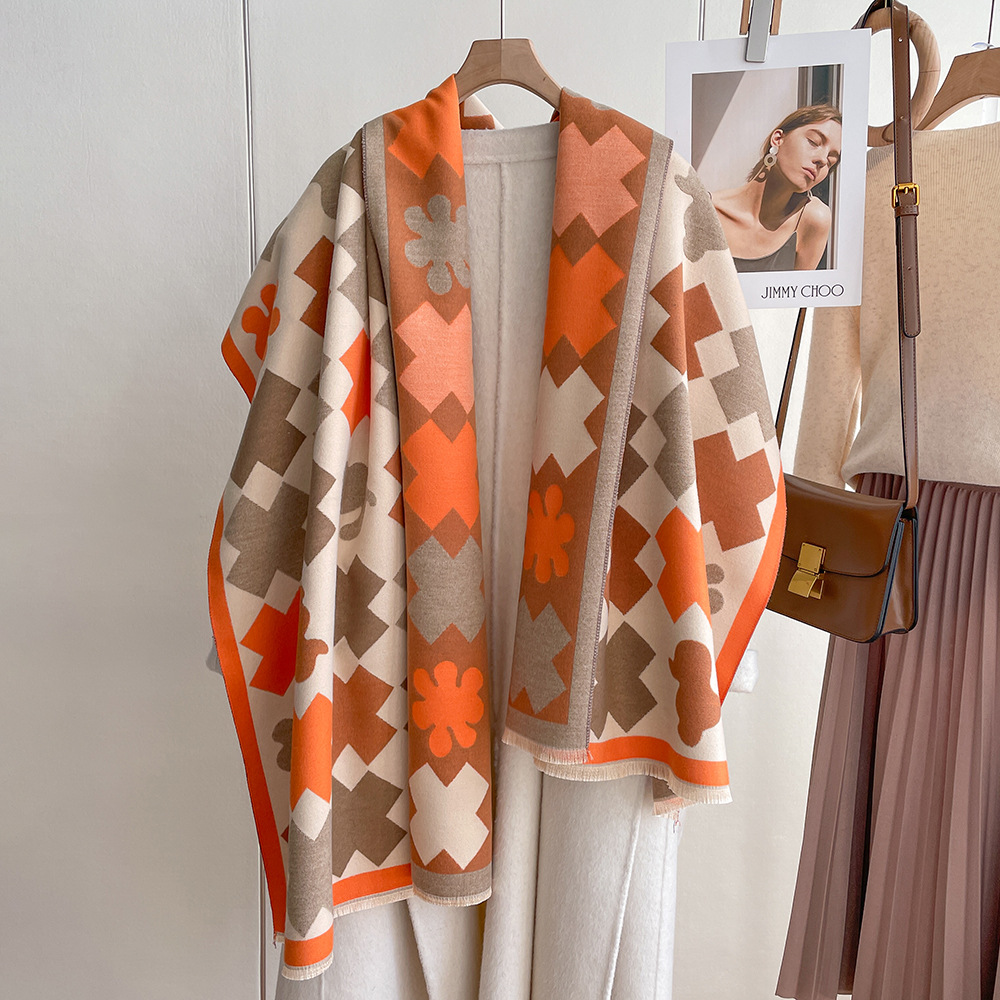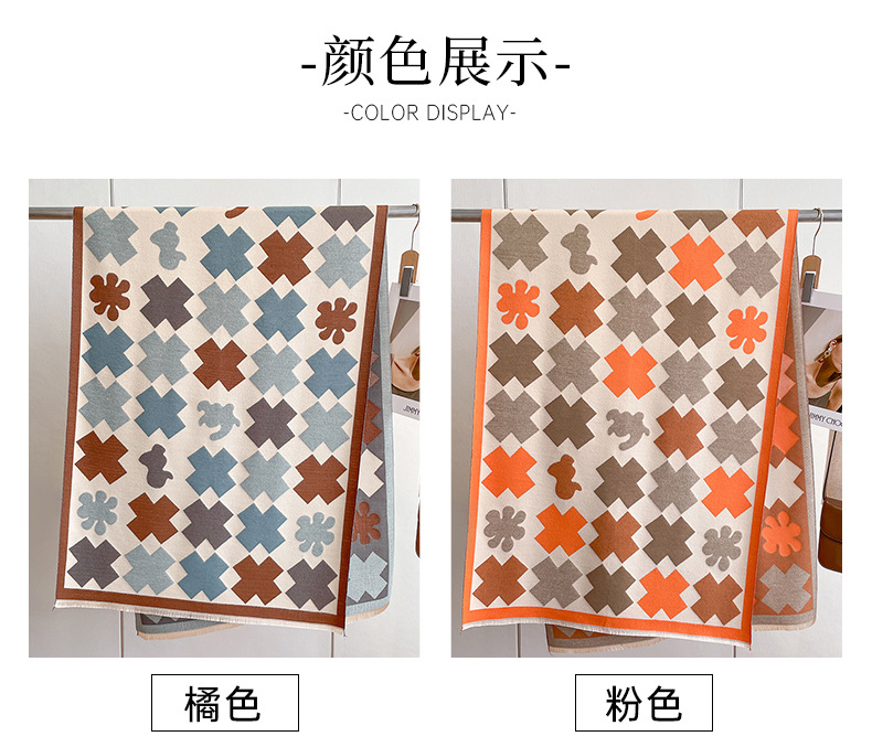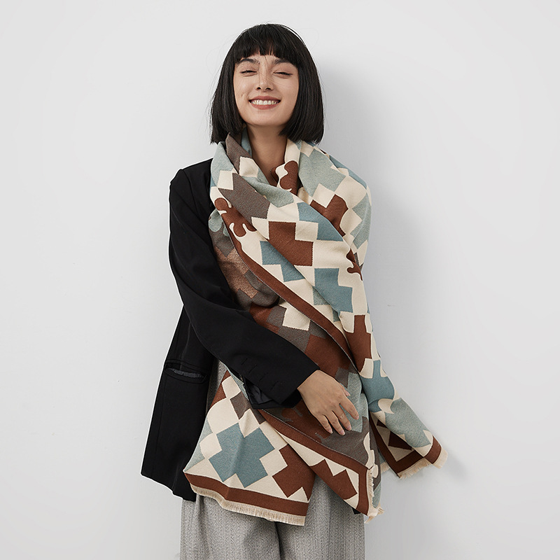 Autumn And Winter New Scarf Women's Shawl Fashion Fork Print Korean Version Small Clear Collar Thick Imitation Cashmere Fringe