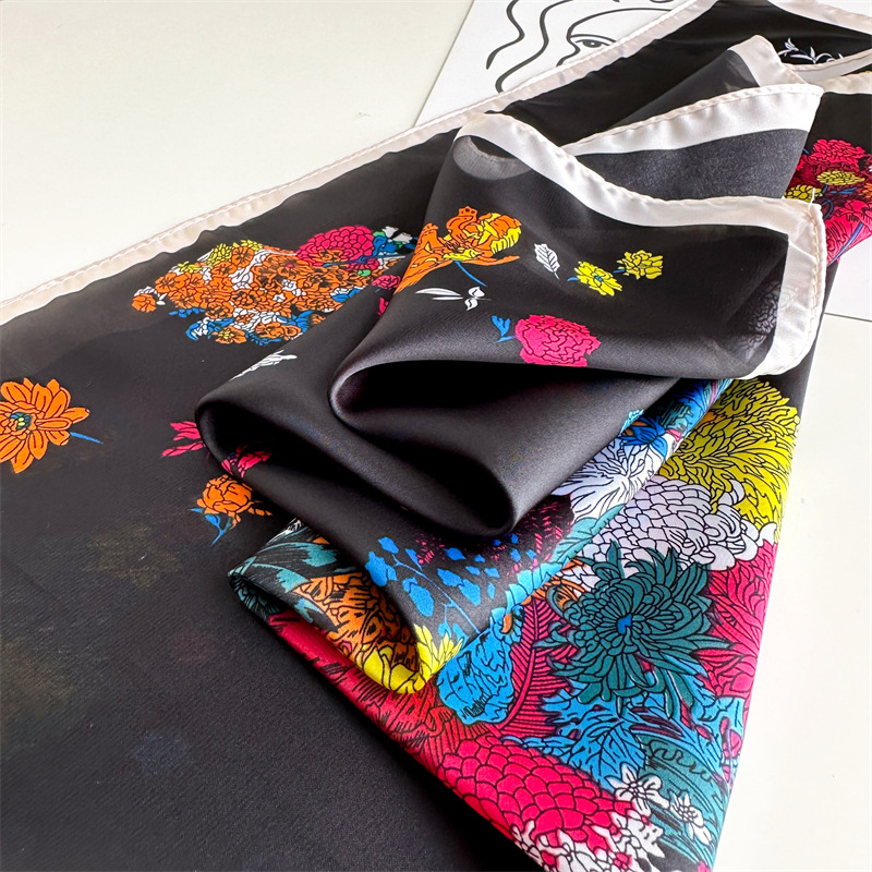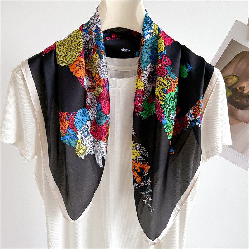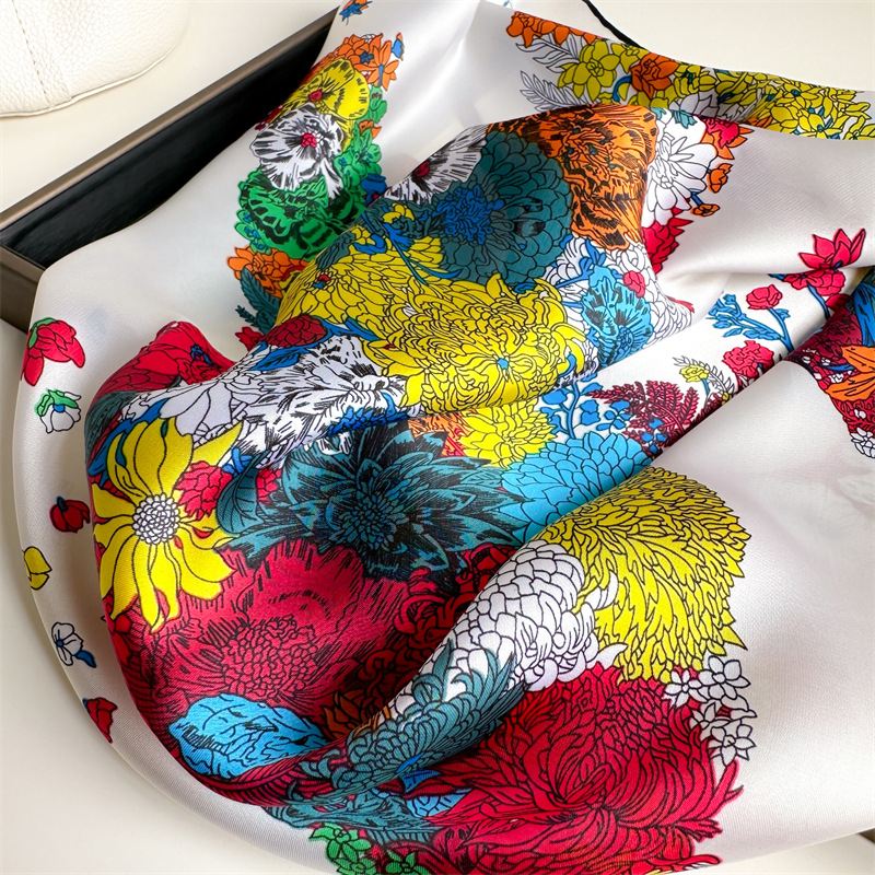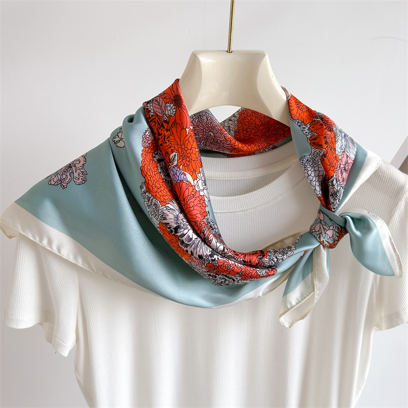 Flower Horse Light Luxury Scarf Match Color Silk Scarf Imitation Silk 70X70cm Scarf Women's Square Shawl Travel Scarf