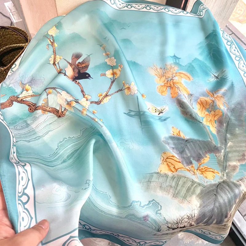 New Silk Scarves For Women Spring And Autumn Europe And The United States Fashion Silk Printed Square Scarves All Match High-Grade Gift Scarf Wholesale