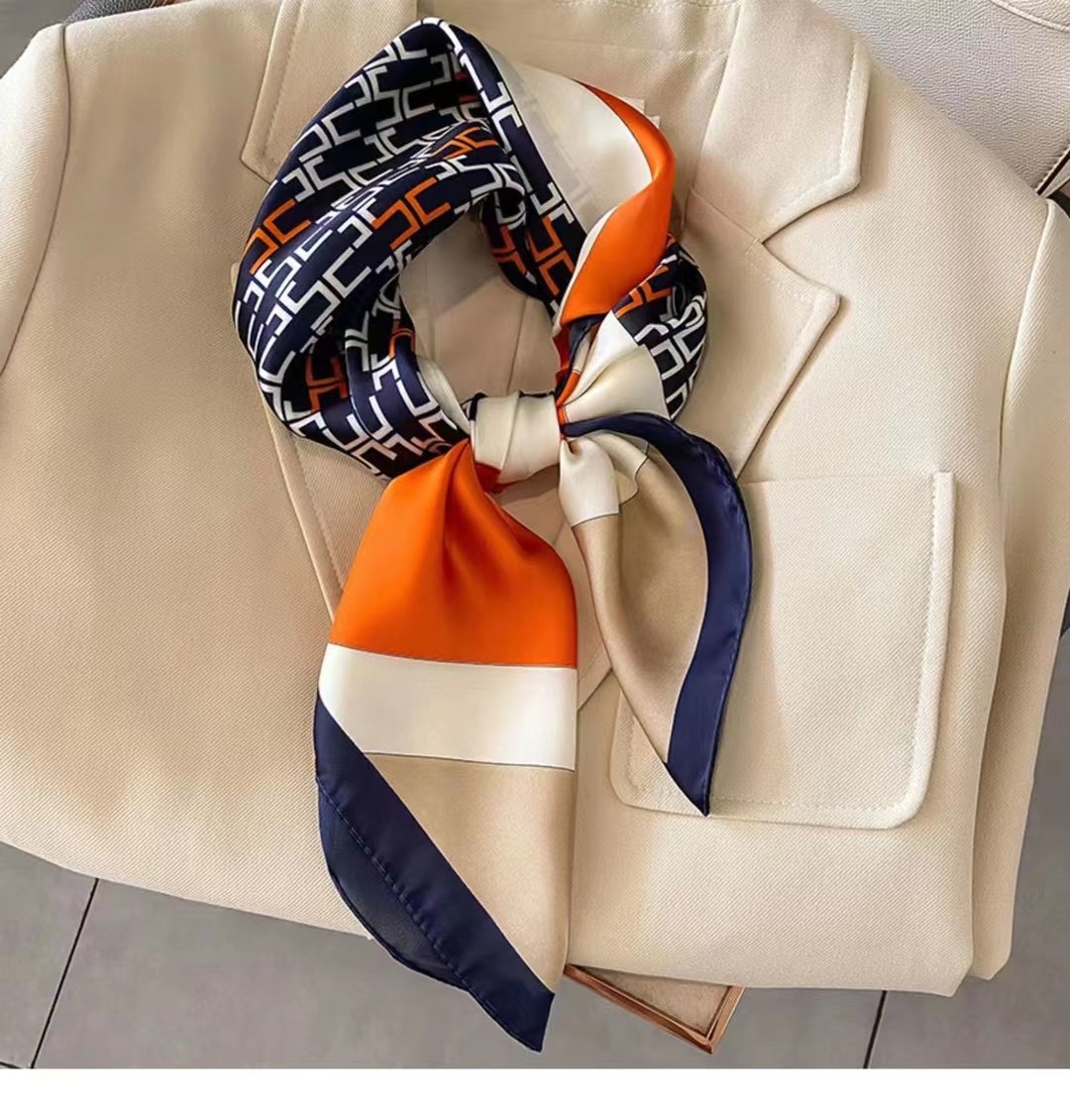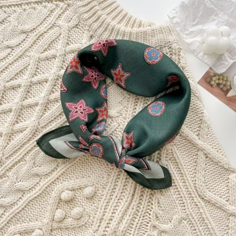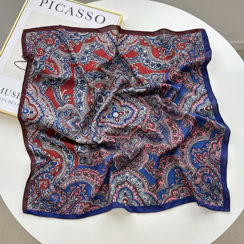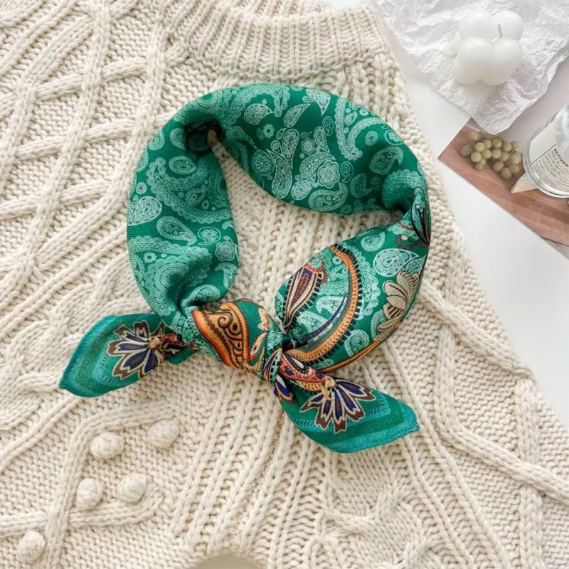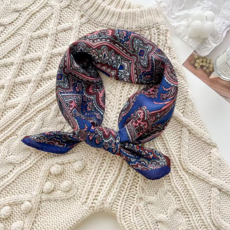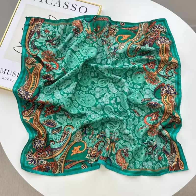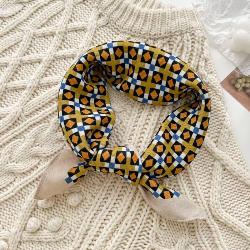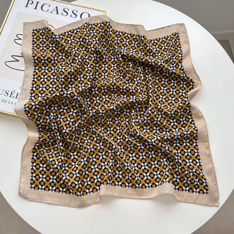 New spot spring and autumn square scarf female imitation silk printed Mosaic color Korean version of ins small square scarf 70CM silk scarf wholesale