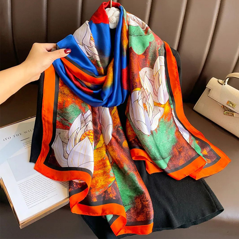 Aliexpress new silk scarf women spring and summer imitation silk printed fashion sunscreen beach towel live long scarf wholesale